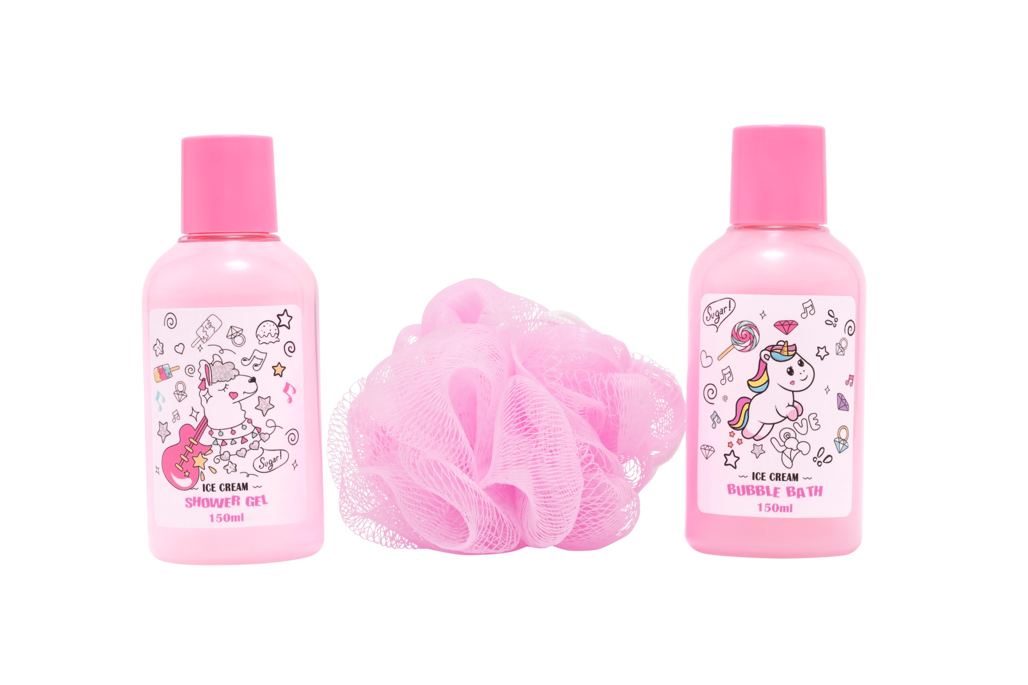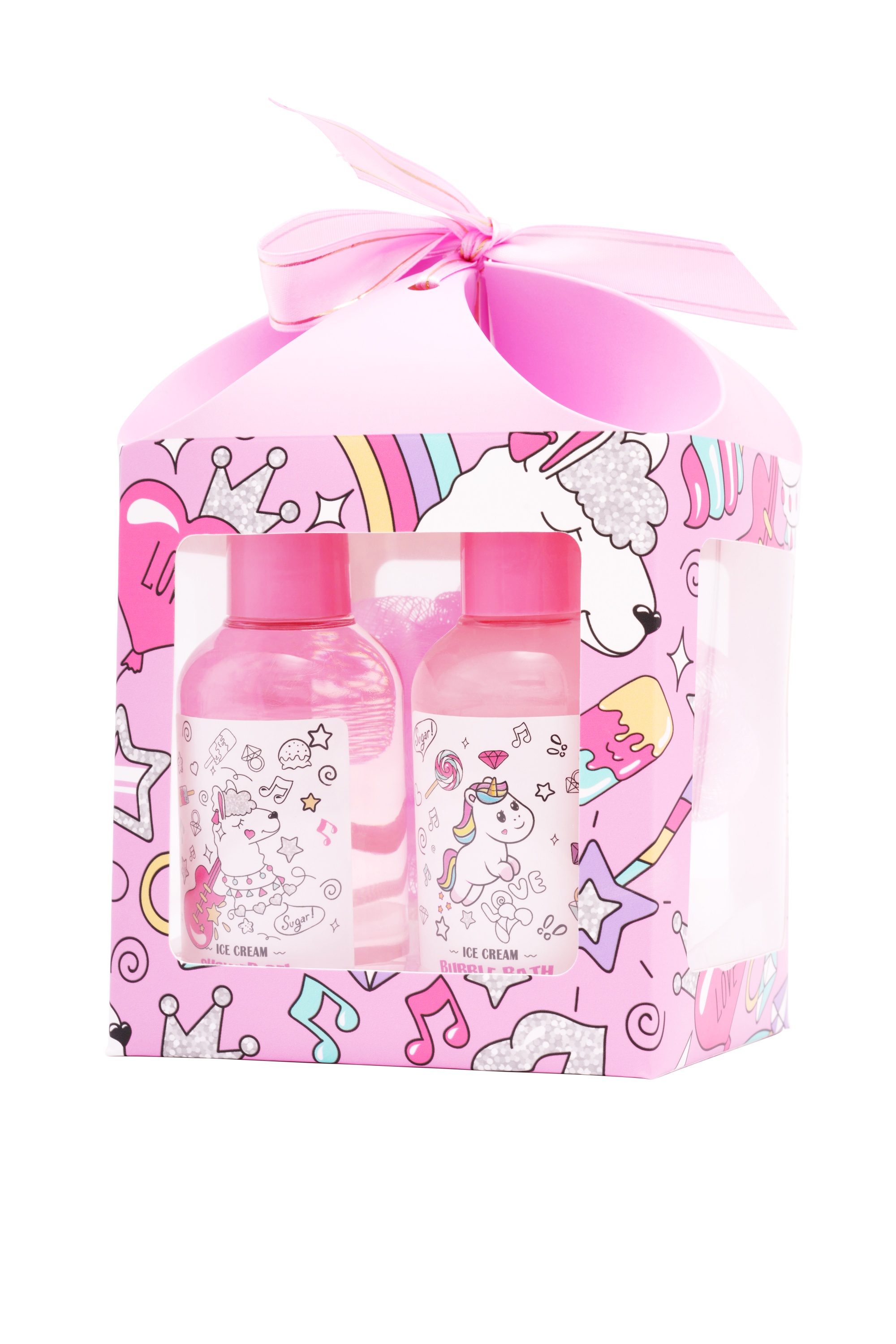 Lahjapakkaus, joka sisältää Suihkugeelin 150ml, kylpyvaahdon 150 ml sekä pesusienen.