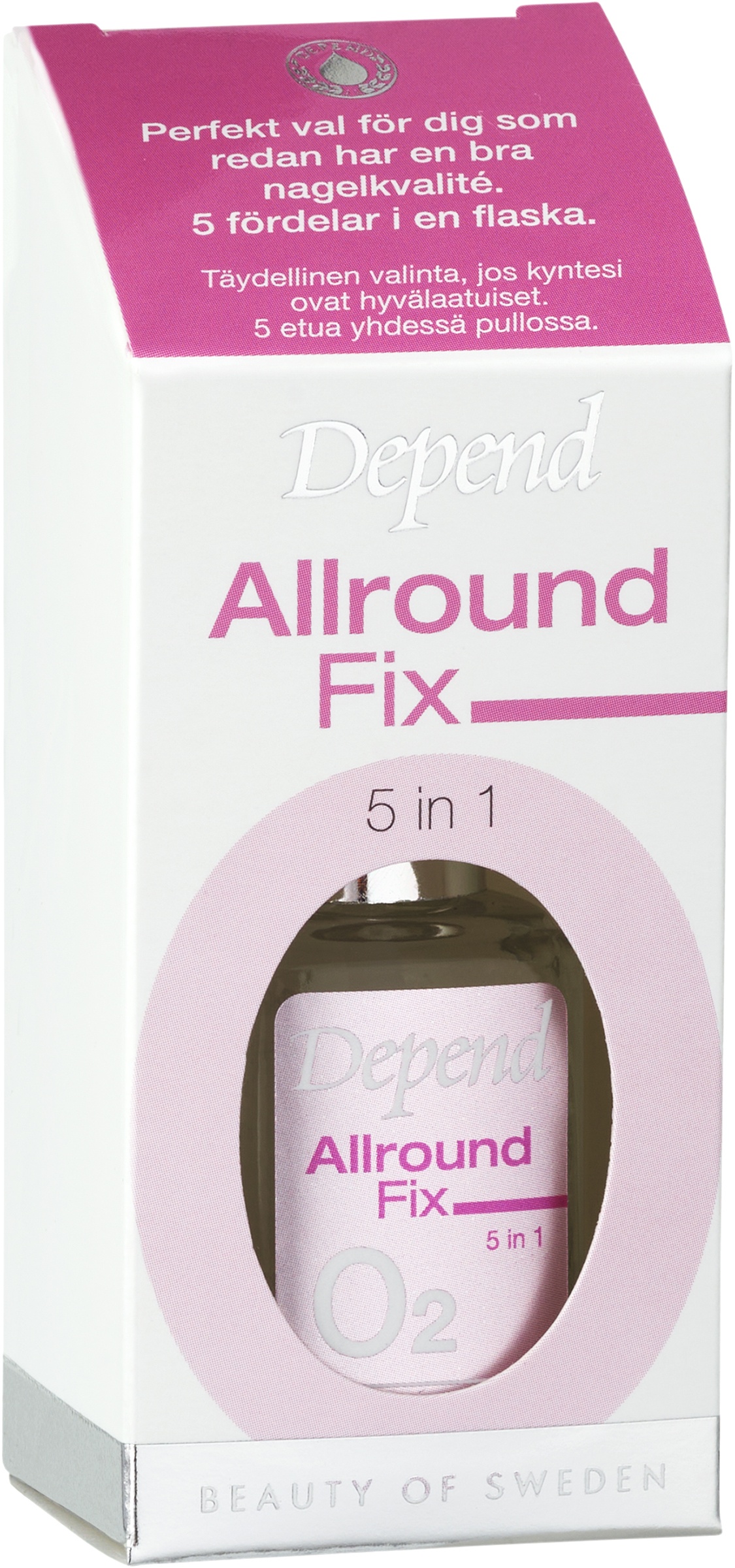 5 etua yhdessä pullossa. Täydellinen ja helppo valinta, jos kyntesi ovat hyvälaatuiset. Alus- ja päällyslakka, nopea kuivuminen ja kynnenvahvistaja samassa. Sisältää myös UV-suojan ja AHA-happoa, joka uudistaa ja vahvistaa kynttä sekä sitoo kosteutta. Sisältö: 11 ml.