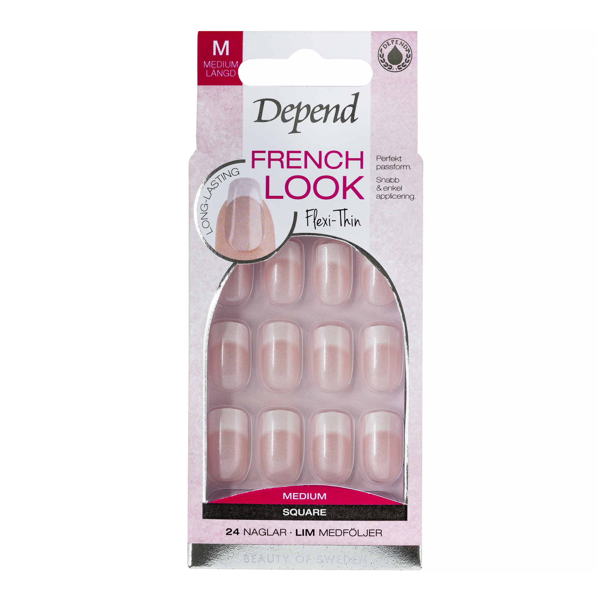 French Look Flexi-Thin tekokynnet, joilla saa täydellisen ranskalaisen manikyyrin vain muutamassa minuutissa. Täydellisesti istuvat Flexi-Thin -kynnet on helppo kiinnittää ja niissä on kiiltävä pinta, joka ei halkeile eikä haalistu. Nopea ja helppo kiinnittää mukana tulevalla liimalla.